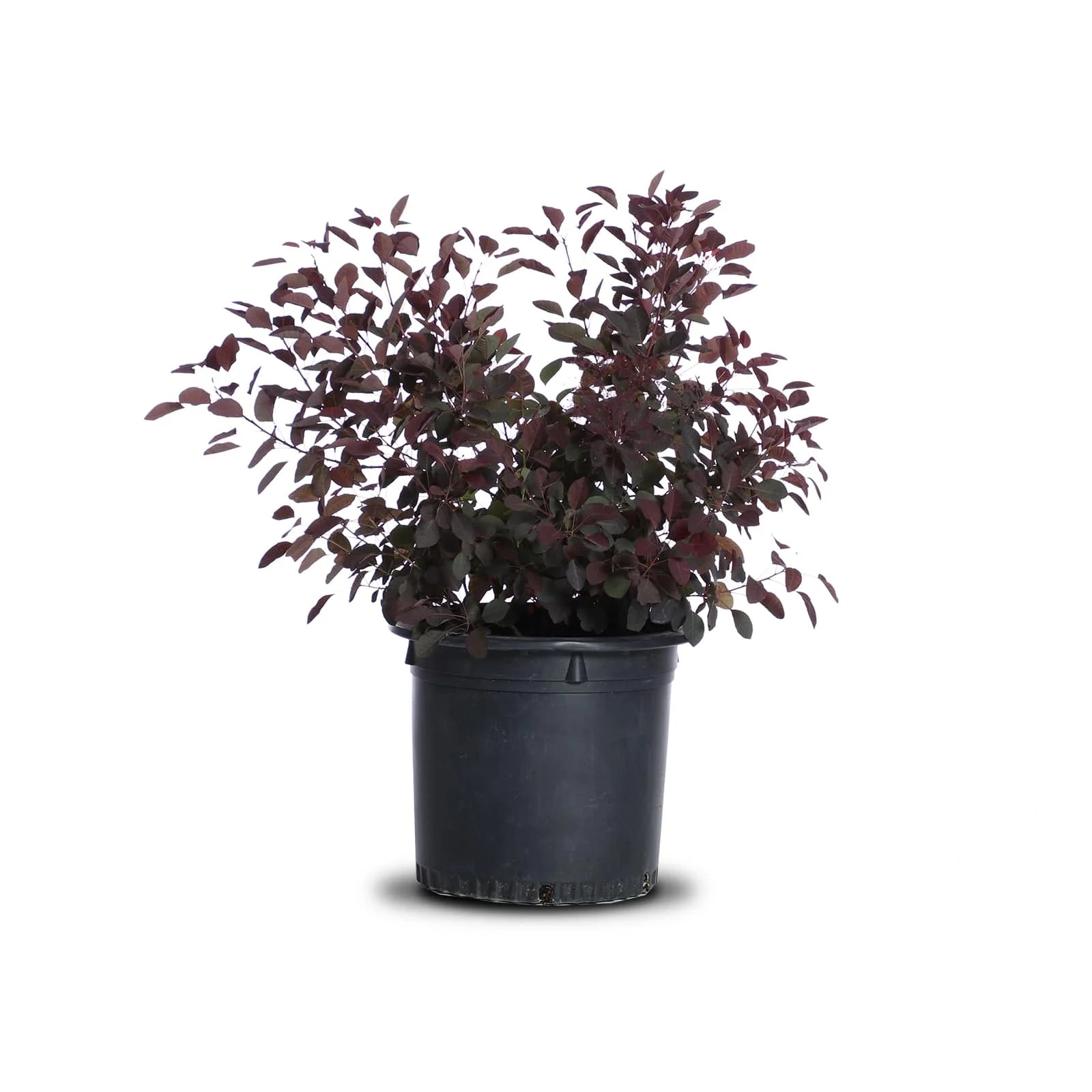 Cotinus coggygria ‘Royal Purple’ (Royal Purple Smokebush) ‘Royal Purple’ is a bold, deciduous shrub known for its deep burgundy to purple foliage that retains rich color throughout the season. In early summer, it produces airy, smoke-like plumes of pinkish flowers, adding dramatic texture. Its upright, spreading habit makes it an excellent specimen shrub or focal point in mixed borders.