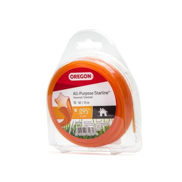 Oregon All-Puropose Starline offers a flexible, durable line for everyday use. Whether you are trimming or edging around garden beds, Oregon's trimmer line features long lasting, high-quality materials and fits most standard trimmer heads. All-Purpose starline is compatible with most standard trimmer heads including fixed-line, semi and automatic bump-feed heads. Additionally, it fits most gas, electric, and battery-powered curved and straight shaft string trimmers. Check your string trimmer manual for recommendations and to ensure that larger lines will work with your trimmer. This trimmer line is packaged in a user-friendly donut which prevents tangles.