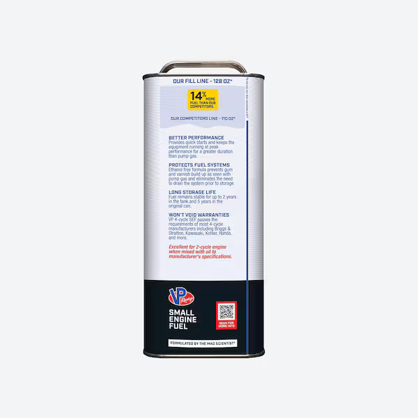 Fuel, Container Size 1 gal, Container Type Can, Gas and Oil Mix Ration Contains No Oil, Engine Cycle 4-Cycle, Additives Included Contains No Oil, Color Clear, Compatible Engine Type Gasoline Engines, Product Form Liquid, Product Type Fuel, Series VP 4-Cycle Small Engine Fuel, Specific Gravity 0.72, Standards OSHA 29 CFR 1910.1200